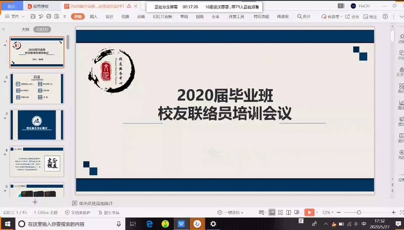 5月27日下午,我院2020届毕业班校友联络员网络培训会顺利举办。本次会议由校友服务中心组织,2020届各毕业班校友联络员、校友服务中心工作人员以及校友服务中心指导老师何玥参与此次会议。