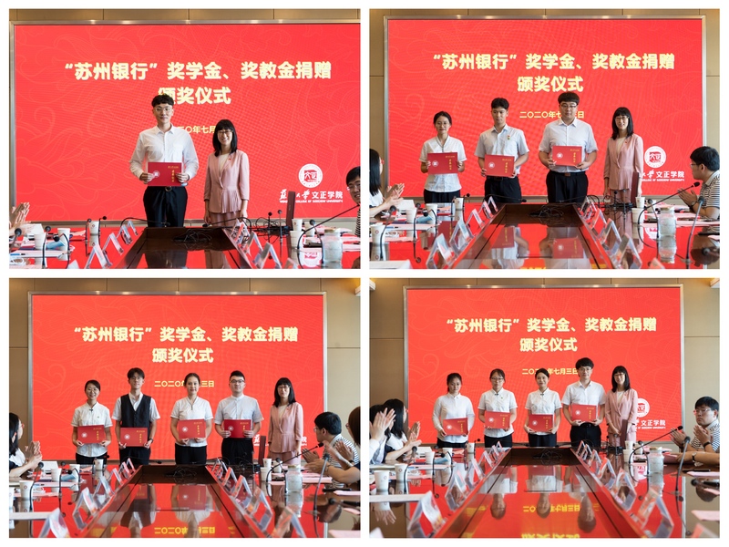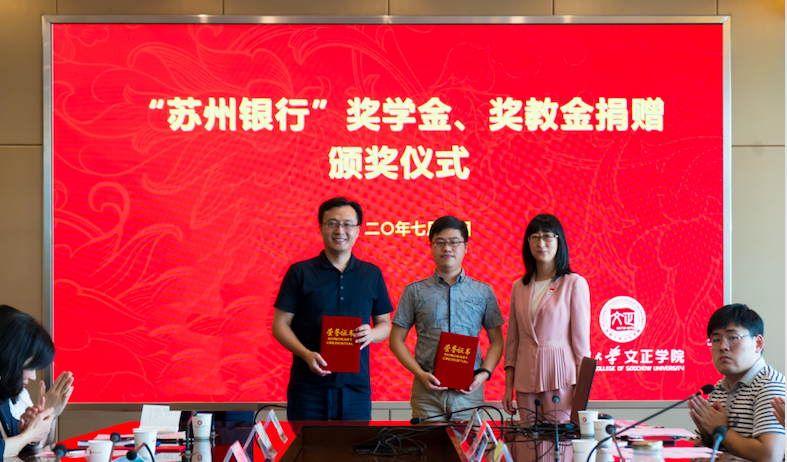 卞海勇、周文军分别宣读了“苏州银行”奖学金表彰决定和“苏州银行”奖教金表彰决定。