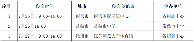 11 | 7月28日-7月31日,9:00-11:00,14:30—17:00 | 江苏省教育考试院 |