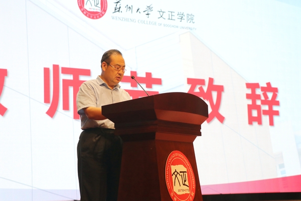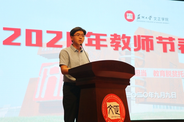 院长吴昌政在讲话中认为,我院老师成绩和荣誉的取得,展示的是个人的聪明才智和责任担当,呈现的却是文正学院的形象和文正人的风貌,传递的更是老师这个特殊群体在国家强盛和民族复兴征程中的追求和情怀。他对学院上学期工作以及暑期工作进行总结,并对本学期工作进行部署。疫情期间,学院把维护师生员工的生命安全和身体健康放在首位,全力以赴打好、打赢疫情防控这场遭遇战,并在此基础上“停课不停教”“停课不停学”,努力把疫情造成的损失降到最小。他的总结围绕党建和意识形态工作、内部管理、师资队伍建设、教育教学、学生工作、招生就业、三创工作、招生就业、国际合作与交流、后勤保障服务等方面展开。