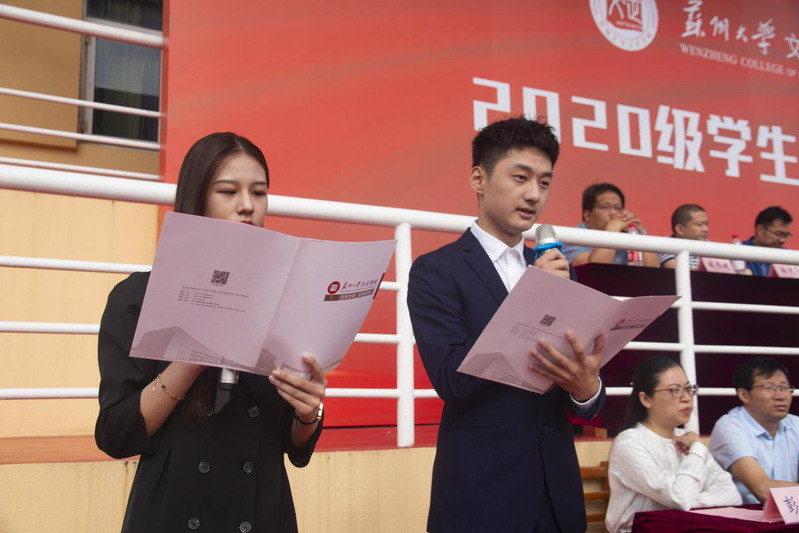 9月26日上午,我院2020级学生开学典礼于运动场顺利举行,3000余名新生参加典礼。学院领导班子成员、各职能部门负责人以及各系(室)主任在主席台就座,典礼由院长助理、教务部部长(兼)胡荣主持。