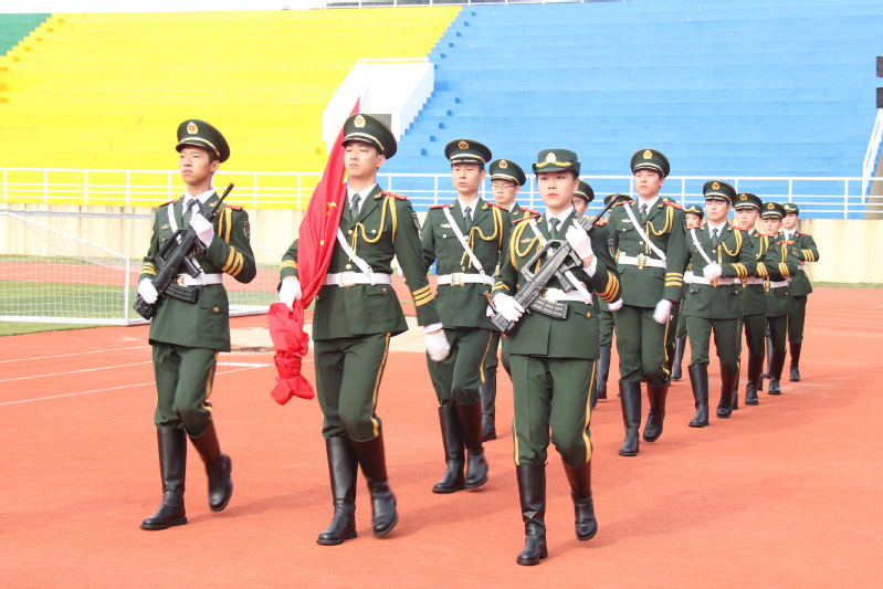 开学典礼在我院国旗护卫队整齐划一的步伐下拉开了序幕。伴随着高亢雄壮的国歌声,鲜亮的五星红旗在全体师生的注目中,冉冉升起。