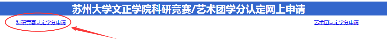 第四步.进入学分认定网上申请页面,点击“科研竞赛认定学分申请”进行操作