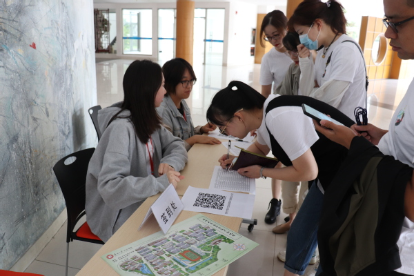 上午,校友们于学院外集合后,由校友服务中心工作人员带领大家前往学生活动中心签到,并领取学院新版地图。此次返校,校友们特意穿着定制的十周年返校上衣参与活动,尽管天气微凉,但丝毫不能影响校友们对重返校园的期待。