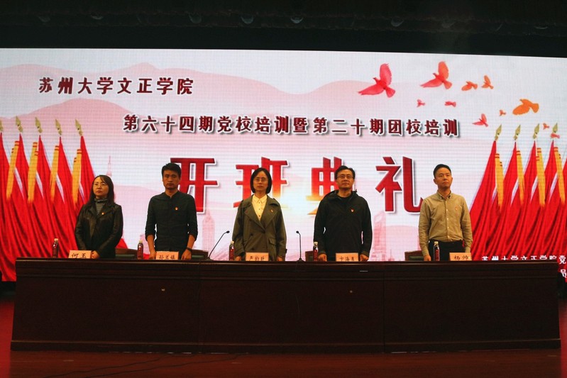 10月27日晚,我院举办了第六十四期党校培训暨第二十期团校培训开班典礼。苏州大学团委副书记严韵致,我院院长助理、学生工作部部长卞海勇,学生处副处长孙兰镇,党委办公室杨帅,团委书记何玉出席本次开班典礼。