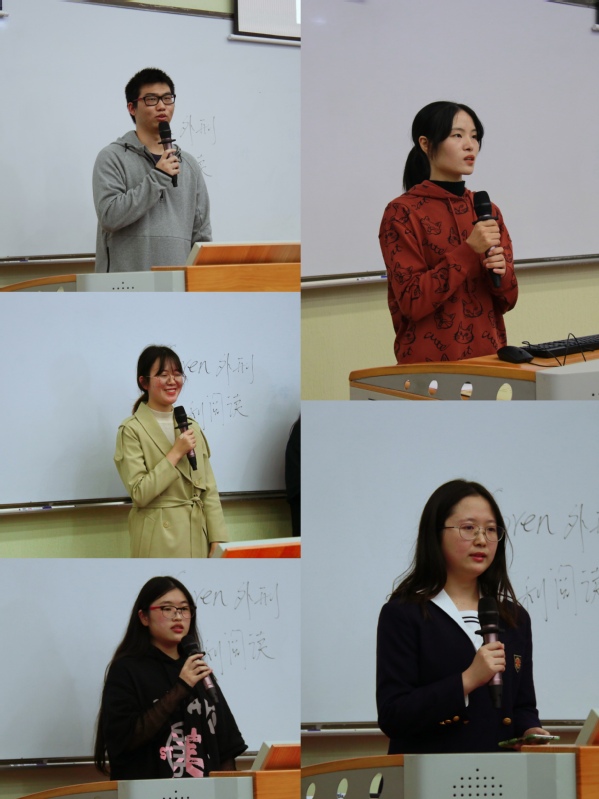 获奖者代表刘小凤等五位同学发表获奖感言,并分享了他们的考研和法考经历,勉励学弟学妹们能够不断努力,顺利考上研究生,通过法考。