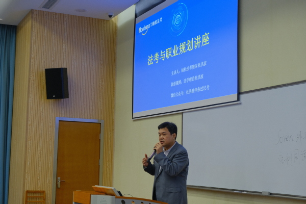 典礼结束后,杜洪波进行了题为“法律人职业规划与法考新政备考方法”的讲座,帮助同学们加深对考研和法考的认识,改进考研和法考的学习方法。