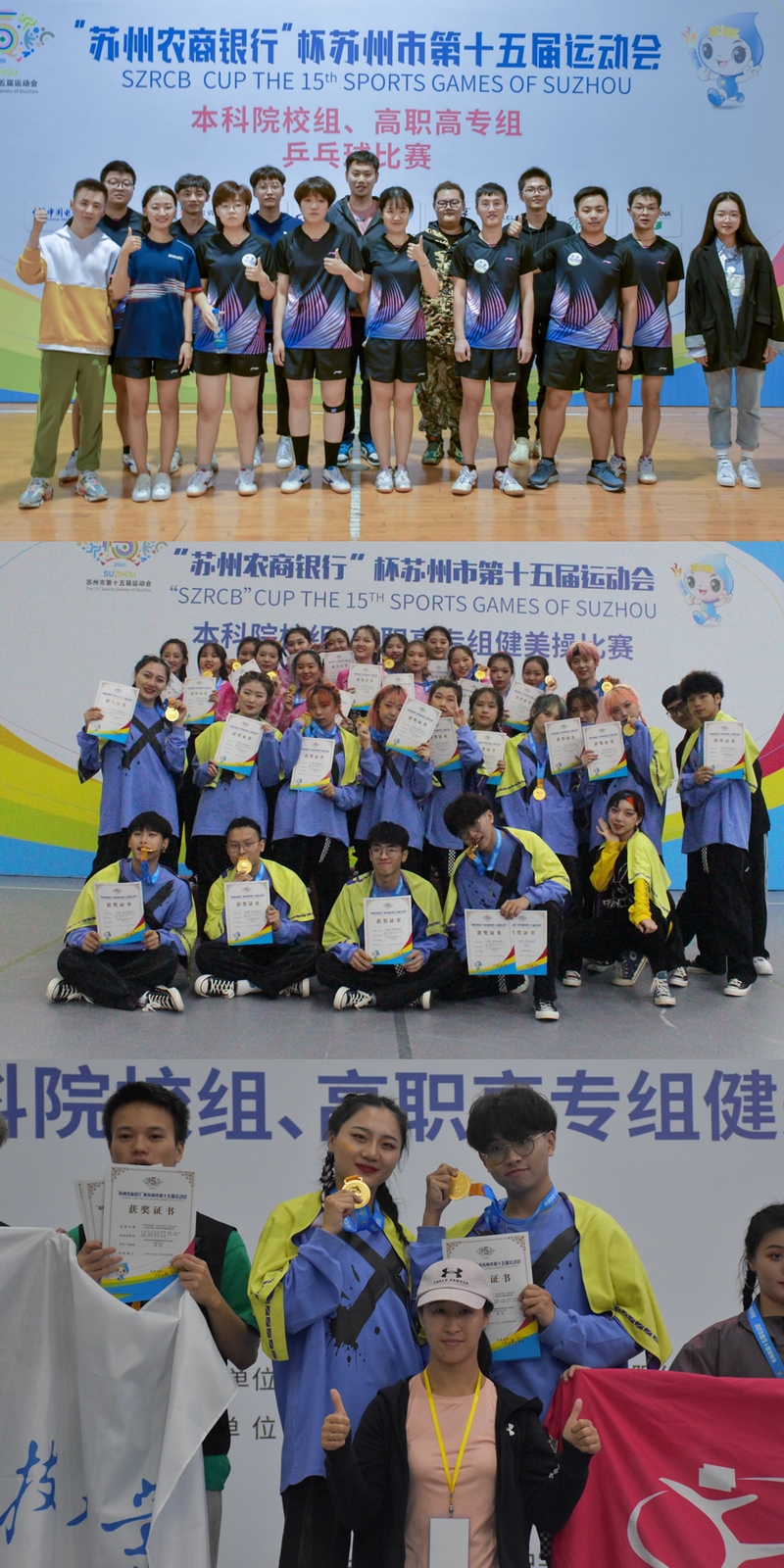 11月1日,四年一届的苏州市第十五届运动会学生部本科院校组正式落下帷幕,我院学子在健美操排舞、街舞项目上包揽双冠,在乒乓球女子单打和女子双打项目上均获得亚军,同时还获得了乒乓球女子双打第五名和羽毛球女子双打第六名的好成绩。徐遵平、滕丽媛、谢锶达、张一凡、尤嘉麒等5名队员获得本届运动会体育道德风尚奖。