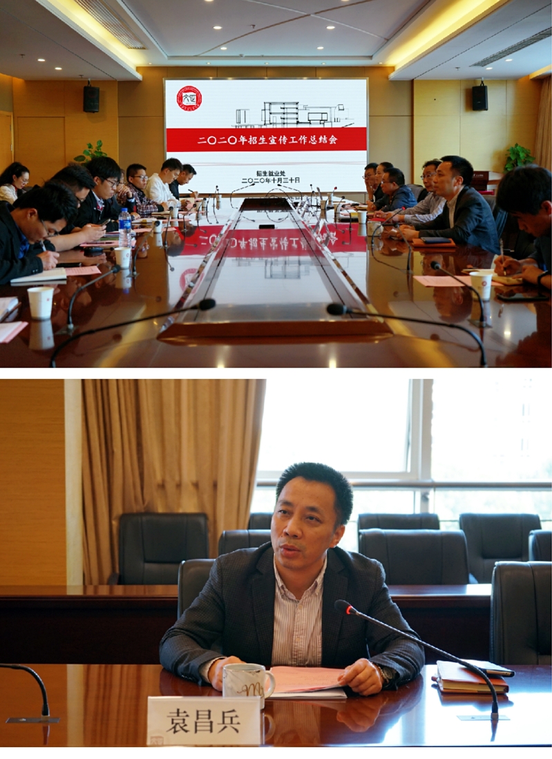 10月30日下午,我院2020年招生宣传工作总结交流会在综合楼三楼会议室召开。院长吴昌政,党委副书记、副院长袁昌兵,院长助理、保障服务部部长(兼)冷飞以及参与招生宣传工作的二十余名老师参加,会议由袁昌兵主持。