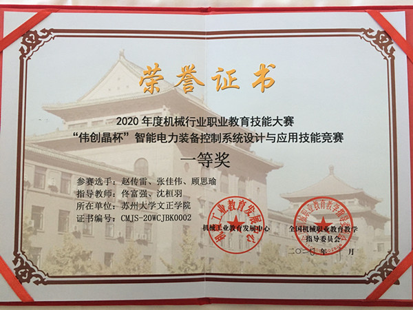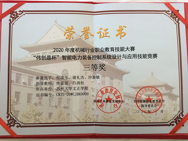 10月30日-11月1日,2020年度“伟创晶杯”智能电力控制系统设计与应用技能竞赛在内蒙古机电职业技术学院举办。我院共选派六名学生组成两支队伍参赛,由光电与能源工程系佟富强、吕清松以及实验实习中心沈桓羽担任指导老师并带队参赛,经过激烈角逐,我院两支队伍分获本科组一等奖和三等奖。