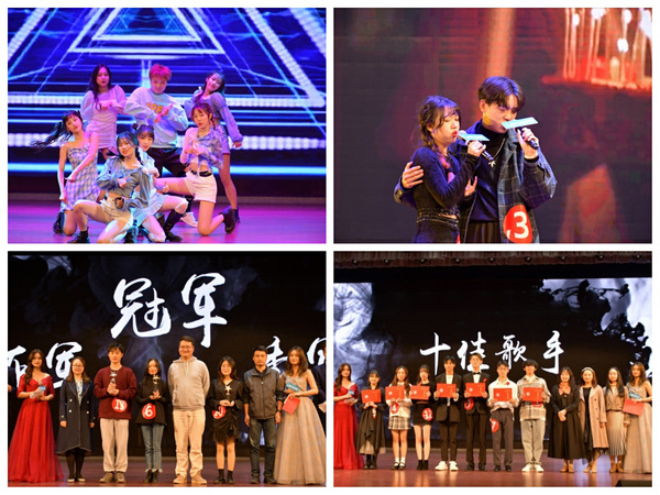 决赛当晚,灯光闪亮,大幕开启,流光溢彩的舞台,交由歌手们尽情绽放。艺术团带来开场舞《BLACKPINK舞蹈串烧》,星光灯影交织,为音乐盛宴奏响序章。比赛分为两部分,第一轮是“1V1 Battle”,14位晋级选手按赛前抽签顺序两两分组合唱同一首曲目,由评委现场打分并淘汰4人。第二轮是“巅峰对决”,由评委老师和大众评审举牌角逐十佳席位和冠亚季军名单。最终,胡豪、陶梓斌、张天悦分别获得本届校园十佳歌手得冠、亚、季军。