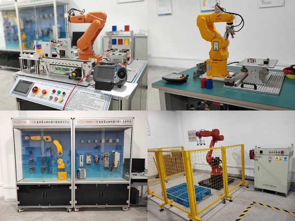 该实验室的设备包含机器人码垛工作站一套、多控模块化可拆装串联机器人一台、工业机器人应用编程一体化教学创新平台一套、工业机器人结构展示平台一套、工业级作业实训易拆装机器人实训平台两套,主要用于机械、机电及电气工程等专业的相关课程的实验教学工作,也可为学生开展创新训练项目、技能等级考证、毕业设计等提供平台支持。