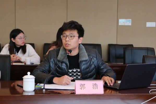 郭浩作学生会组织深化改革工作汇报,他从学生会改革的推进进程、基本情况、未来展望三部分具体展开。涵盖了我院学生会落实党委的全面领导、改革运行机制、明确遴选条件、严格遴选程序、规范召开代表大会、坚持从严治会、建立述职评议制度等方面。