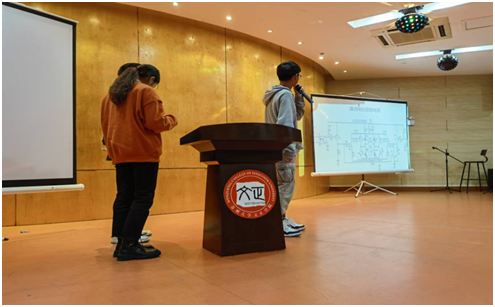 选手经过初赛、复赛的层层选拔,共有21名选手进入决赛,每3人一组共计7组。决赛当晚,每组派出1名同学围绕基础理论、设计思路、实际困难等方面进行3分钟的答辩陈述。每组答辩陈述完毕,全体组员接受评委提问。经过激烈角逐,18电子叶洁、19电气张程浩和20机电严成玉三位同学获得一等奖。