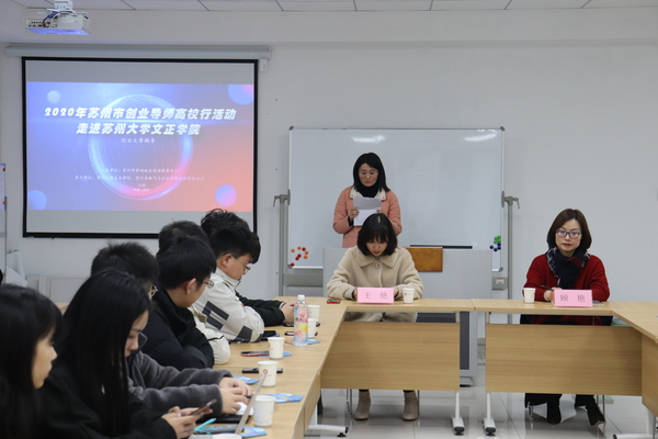 活动伊始,主持人介绍了此次参会人员和苏州市创业导师高校行活动的目的。她表示,本次活动为主动对接在苏高校大学生创业者的需求,走进创业一线开展咨询服务活动,采用沙龙的方式,邀请创业导师与大学生创业者面对面交流,解决创业者在创业过程中遇到的问题,提高其创业能力。