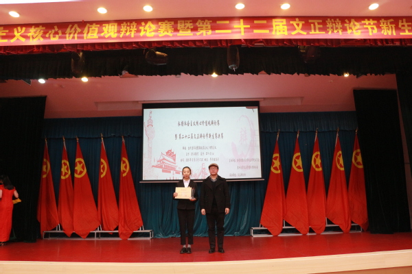 最终,20汉语言文学代表队获得冠军,20人力资源管理(W)代表队获得亚军,20新闻学代表队、20国际经济与贸易代表队获得季军。20汉语言文学代表队的张睿睿同学获得本届新生赛“全程最佳辩手”荣誉称号,另外还有来自各专业的37名同学获得“单场最佳辩手”荣誉称号。