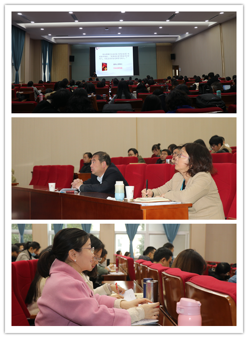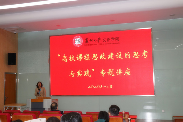 为全面贯彻习近平总书记关于教育的重要论述和全国高校思想政治工作会议精神,深入落实教育部《高等学校课程思政建设指导纲要》、《省教育厅关于深入推进全省高等学校课程思政建设的实施意见》有关要求,全面推进我院课程思政建设,有效发挥每门课程的育人作用,切实提高人才培养质量。12月3日下午,学院邀请苏州大学马克思主义学院副院长朱蓉蓉教授作“高校课程思政建设的思考与实践”专题讲座。学院党委书记仲宏、纪委书记解燕和全体教职工参加讲座。本场讲座由解燕主持。