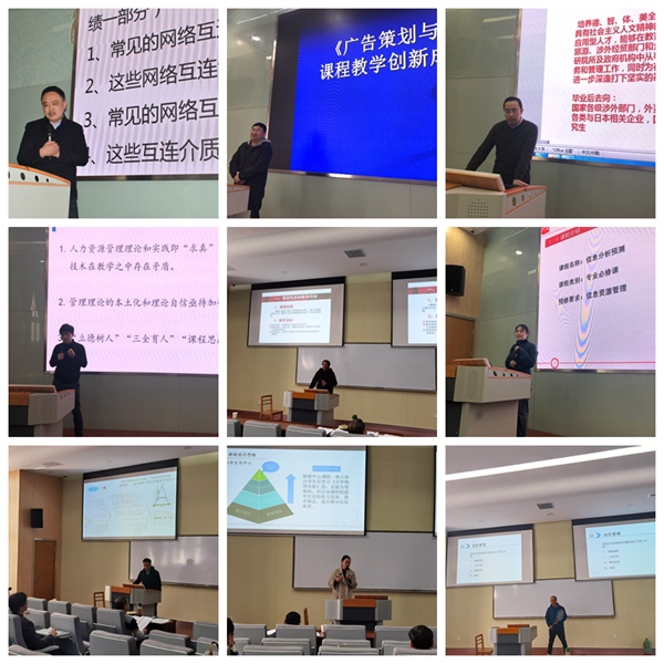 各评审专家分别从参赛教师提交的课程创新成果报告、课程教学大纲、课程设计思路现场汇报、现场模拟教学四个方面进行综合打分。通过得分统计和评审小组合议,共评选出一等奖1名、二等奖2名、三等奖7名,优秀奖8名。其中一、二等奖获得者将推荐参加省赛。