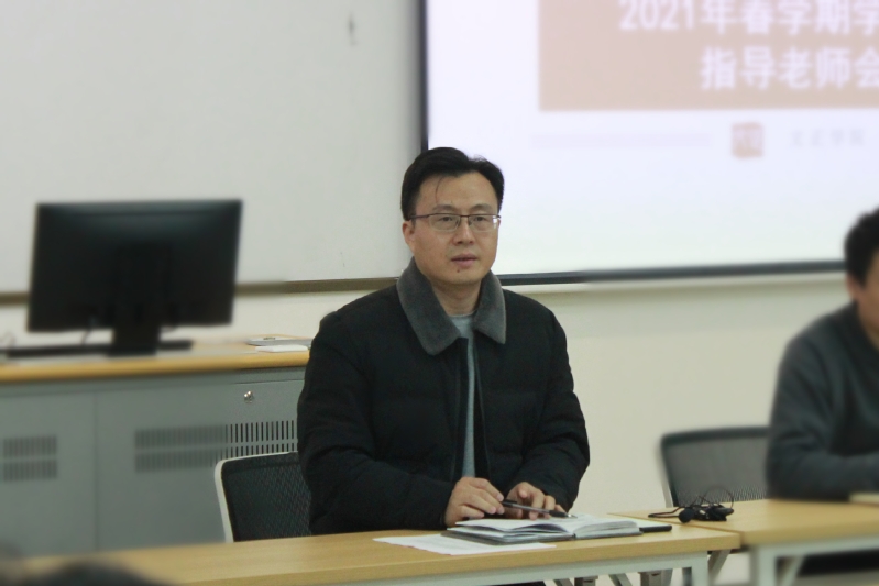 3月18日下午,2021年春学期学生组织指导老师会议于综合楼122室举行。我院院长助理、学生工作部部长(兼)卞海勇,学生处处长祁素萍,副处长孙兰镇,处长助理、团委书记何玉,处长助理田克迪,全体团学指导老师出席本次会议。