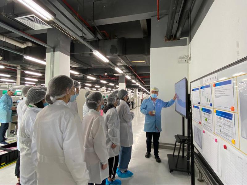此次走访活动分为企业宣讲、企业参观、应聘面试三个环节。胡经理就企业发展规模、企业文化以及入职条件等进行详细讲解,带领走访团队参观了生产车间多条生产线,介绍了生产流程和各个岗位的工作职责。参观结束后,各部门负责人对毕业生分别进行面试并达成初步就业意向。