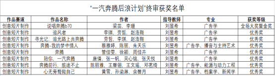 4月28日,由一汽奔腾、中国青年创业就业基金会与凤凰网青春BANG共同举办的“一汽奔腾后浪计划”大赛终审会在北京拉开帷幕。我院文学与传播系广告学专业教师刘昱希指导的多件作品在本次大赛中斩获佳绩。