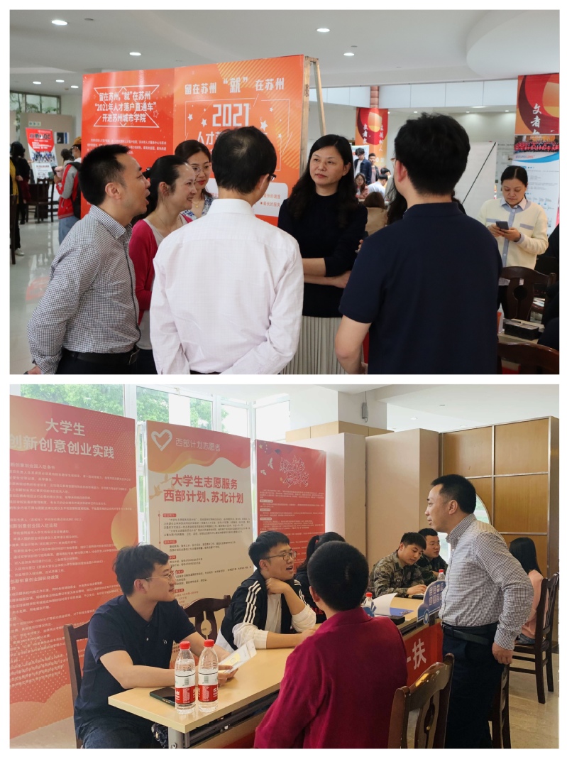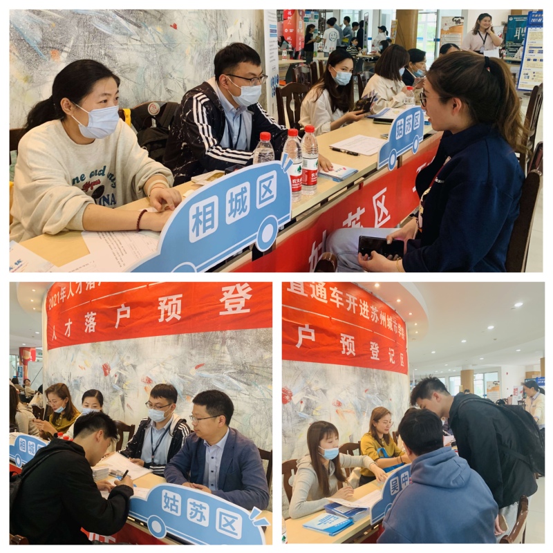 我院积极响应苏州市政府着力打造青年发展型城市、更好地促进青年人才就业创业的建设规划,于5月19日下午在学生活动中心举办“2021年苏州市人才落户直通车”专场招聘会。此次活动由苏州市人才服务中心组织下辖的吴江区、吴中区、相城区、姑苏区、工业园区、高新区人力资源管理服务中心共同参与。