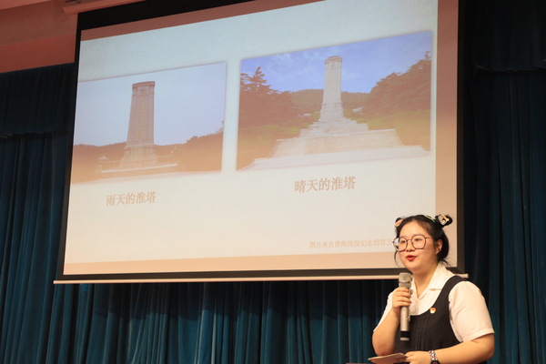 18汉语国际教育团支书张芊芊作为代表展示微团课,主题为“一顶绿色棉军帽——弘扬淮海战役精神”。她从一顶军帽开始,介绍了淮海战役经过、阐述了淮海战役精神以及淮海战役精神在抗“疫”中的体现,并从以上几个方面揭示了人民为什么选择了中国共产党的深刻道理。