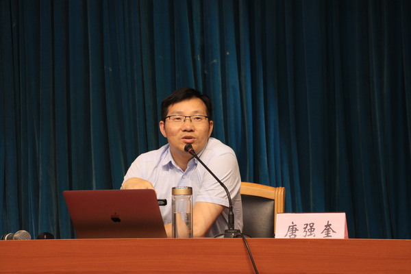 唐强奎开展主题讲座。他从“学习党史的国际国内形势”、“渡江作战决策的历史背景”、“渡江作战决策的美苏阻扰”、“渡江作战决策意义与启示”四个部分展开介绍。讲座中,唐强奎通过一桩桩事件、一个个故事带领同学们回顾了渡江战役决策前的国际、国内格局和形势,表明了中国共产党维护祖国统一的决心。他希望透过渡江作战历史决策的轨迹,帮助同学们深刻认识中国共产党为什么能,中国统一为什么行,中华民族伟大复兴为什么会,同时增加同学们“四个自信”,提高同学们国际视野。
