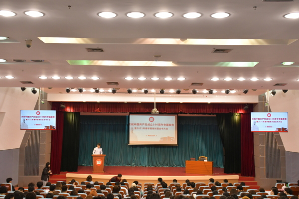 5月24日晚,我院2021年春学期班长团支书大会在学术报告厅举行。学生处处长祁素萍,副处长孙兰镇,处长助理、团委书记何玉,处长助理田克迪,团委副书记王一、郭浩以及学生处全体团学指导老师出席会议。同时,本次大会特别邀请我院思政教研室主任唐强奎副教授开展党史主题教育讲座,讲座主题为“渡江作战伟大决策见证中国共产党为什么能”。大会由张鹏远主持。