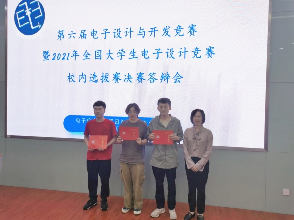 5月27日,由电子信息工程系主办的第六届电子设计与开发竞赛暨2021年全国大学生电子设计竞赛校内选拔赛答辩会在教学楼3-101成功举办。电子信息工程系系主任陈蕾,光电与能源工程系系主任邹丽新,电子科学与技术专业负责人石明慧,电子信息工程系骨干教师周敏彤担任本次答辩会评委。