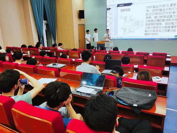经过初赛、复赛的激烈角逐,11组选手脱颖而出晋级最终答辩环节。选手们围绕“系统结构框图”、“器件功能”、“各部分电路分析”、“调试结果分析”、“心得体会”等方面依次进行汇报。
