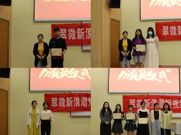 6月1日晚,“光影华章,百年荣光”——翠微新浪潮短视频大赛展播及颁奖仪式在3-201举行,文学与传播系讲师赫金芳、文学与传播系学工办主任朱琳、学生新闻中心指导老师包晨婷担任评委。本次活动是我院庆祝中国共产党成立100周年文艺作品大赛系列活动之一,由学生新闻中心,文学与传播系团总支、学生分会联合举办。