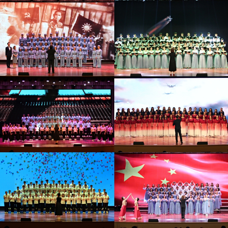 十佳歌手代表王皙冉、傅霖等共同献唱《没有共产党就没有新中国》,他们用饱含真情的旋律致敬伟大的党,歌唱伟大祖国。晚8:30,我院“百年梦想·时代乐章”——庆祝中国共产党成立100周年师生大合唱比赛在激情澎湃的歌声中圆满结束。(图/邵嘉玲 钱璐颖 唐世星 周其彦 魏子晗 新媒体工作室 文/周奕嘉)