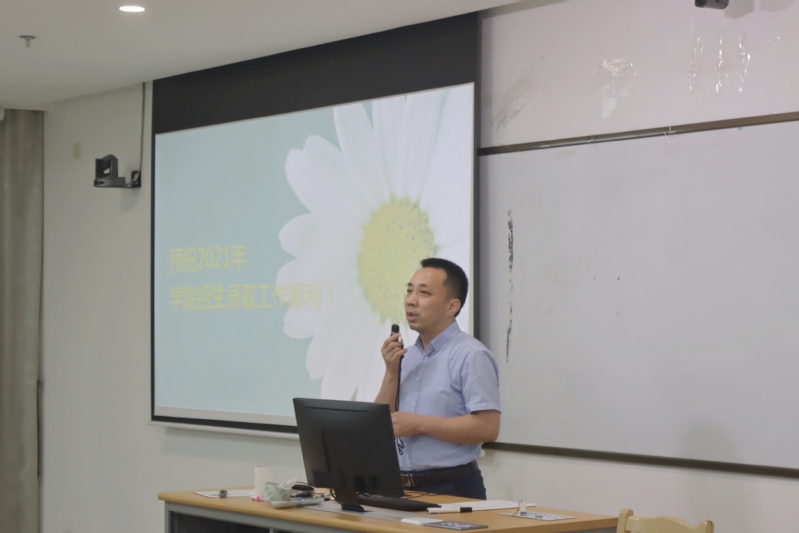 6月17日下午,我院2021年外出招生宣传动员暨培训会在综合楼122室召开。纪委书记解燕,党委副书记、副院长袁昌兵,招生就业处处长宋丹以及全体外出招生宣传工作人员参加,宋丹主持会议。