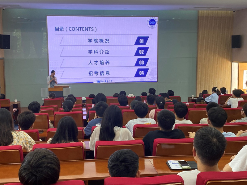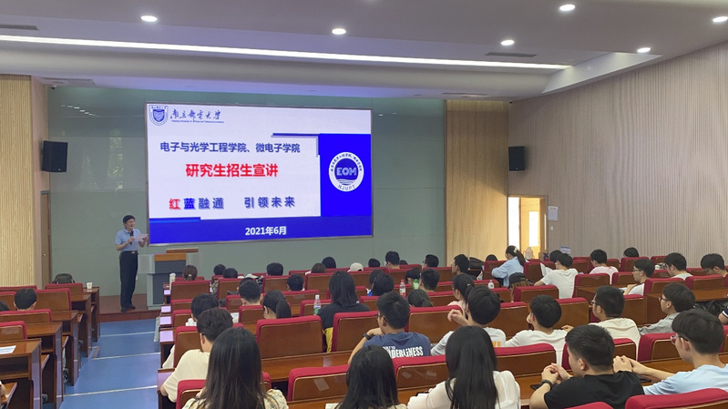 李培丽是南京邮电大学电子与光学工程学院、微电子学院副院长,江苏省“333高层次人才培养工程”中青年科学技术带头人,江苏省教育厅“青蓝工程”中青年学术带头人。在宣讲会上,她围绕南京邮电大学电子与光学工程学院、微电子学院的学院概况、学科建设、人才培养和招考信息等方面进行了详细的介绍,并讲解了电子科学与技术、光学工程等专业学科特色和优势领域以及研究生招生、培养、就业情况。她鼓励同学们积极报考南京邮电大学电子与光学工程学院、微电子学院的研究生,从自身实际出发,选择适合自己的专业,并邀请同学们参加南京邮电大学即将举行的暑期夏令营。
