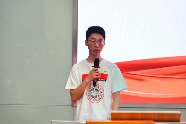 2021年暑期社会实践活动重点团队代表陈培希讲述了他的实践初心,并表示将在实践中勤学格物、笃实力行、明辨慎思,通过所看、所听、所感,坚定理想信念磨炼意志品质,在服务社会中彰显人生价值,在实践学习中增长才干。