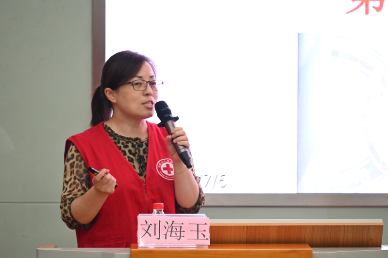 出征仪式结束后,苏州大学附属瑞华医院院长助理,苏州市吴中区红十字会救护培训讲师刘海玉为同学们带来关于团队实践过程中的安全培训,为大家暑期社会实践的安全保驾护航。(图/戴家杰 文/李天一)