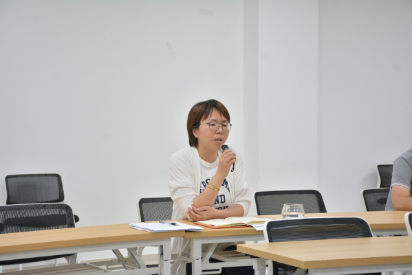 祁素萍分享了观看的感受并做总结发言。她表示,简敏和张桁嘉两位老师的事迹体现了高校辅导员立德树人的责任担当和育人情怀,能够为我院学工队伍提供学习和借鉴,为进一步加强和改进大学生思想政治工作提供思考和启迪。她希望全体辅导员回望初心,结合自身的职业发展找到努力的方向,发挥团队协作的优良传统,利用好学工论坛等平台充分地沟通和交流,不断深耕学生工作,真正做到不忘初心,“用爱守候”。