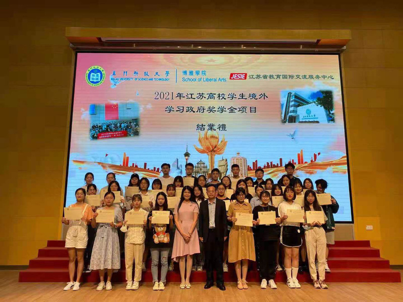 江苏高校学生境外学习政府奖学金项目由江苏省教育厅主办,江苏省教育国际交流服务中心承办,选派省内优秀本科生暑期分批次赴澳门地区高校进行相关内容的线下学习实践,同时参加由英、美、加、澳等国知名高校开设的线上专业直播课程,时间为两周。我校共有19名学生申请并获得江苏省政府全额或部分财政资助。学生学习到专业知识的同时,也与省内其他高校大学生进行了交流。
