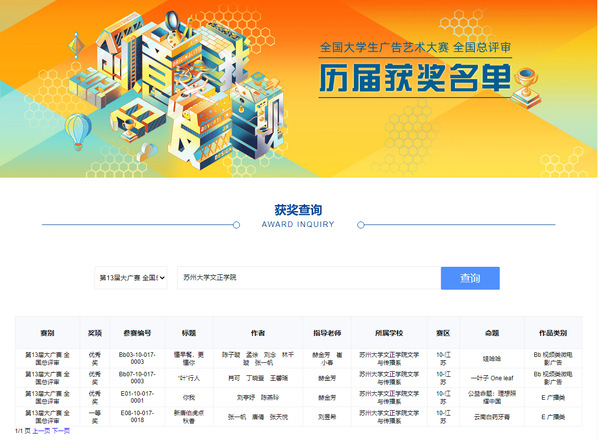 近日,第十三届全国大学生广告艺术大赛全国总决赛评审结果揭晓,我校学子在文学与传播系崔小春、赫金芳、刘昱希和艺术系谢雪莹老师的指导下参加了本届比赛,报送作品中共有4组作品获国家级奖项,65组作品获省级奖项。其中,来自文学与传播系广告学专业的张一帆、唐倩和张天悦同学创作的《新唐伯虎点秋香》荣获2021年云南白药广播类作品国家级一等奖。