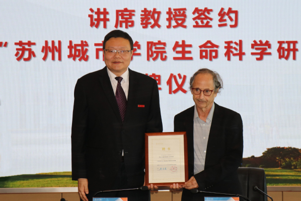 今天(9月30日),诺贝尔化学奖得主、美国国家科学院院士、英国皇家学会院士、美国斯坦福大学结构生物学教授Michael Levitt(迈克尔·莱维特)和加拿大工程院院士、加拿大智能医疗设备研究主席、蒙特利尔综合理工学院电气工程学教授Mohamad Sawan(默罕默德·赛万)受聘苏州城市学院,共同揭牌成立“苏州城市学院生命科学研究院”。我校党委副书记、校长赵志宏,党委常委、纪委书记李萍,市科技局、市委组织部人才办领导参加此次活动,仪式由我校党委常委、副校长高雷主持。