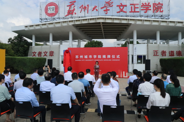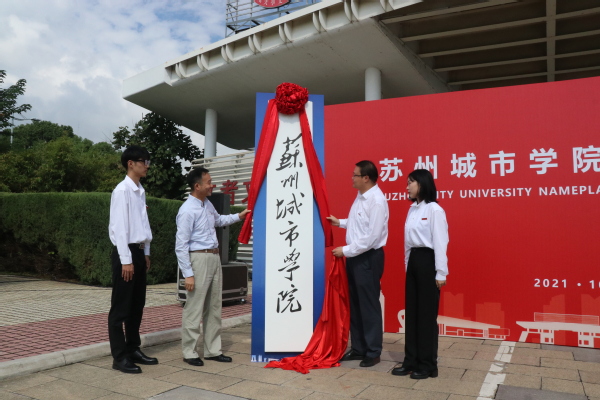 在简单而热烈的气氛中,苏州城市学院揭牌仪式于今天上午在学校南大门举行。仪式由校党委副书记周玉玲主持。校长赵志宏、教师代表、新老生代表共同为苏州城市学院揭牌。