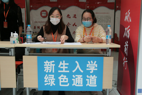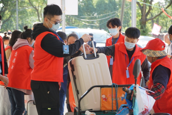 为了减少人员聚集、加快报到速度,除了在火车站、汽车站安排大巴接站外,学校在校园南大门、横越路、北二门、学生活动中心等处分散设置报到点,还专门为新生配备“蓝朋友”“红马甲”志愿者,一大批党员志愿者和爱心志愿者冲在迎新一线,为新生们“保驾护航”。