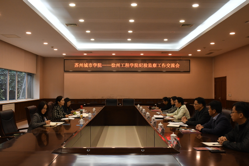 李萍介绍了苏州城市学院的历史沿革和基本情况,简要介绍了学校发展定位和努力方向。李萍表示,与徐州工程学院、常州工学院的深入交流,为我校纪检工作的深入开展提供了可借鉴的宝贵经验,要认真总结梳理调研成果,着力加强体制机制建设和队伍建设,不断强化业务学习,提升素质能力,确保我校纪检工作发挥实效。
