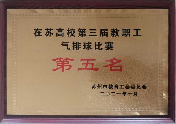 10月30日,在苏高校第三届教职工气排球比赛在苏州科技大学教工活动中心顺利举办。我校作为在苏高校新成员首次组队参加了比赛。经过一天激烈角逐,我校代表队荣获第五名。