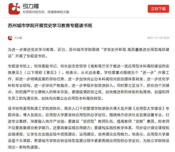 为进一步推进党史学习教育,近日,苏州城市学院围绕“学党史开新局 高质量推进应用型高校建设”开展了专题读书班。