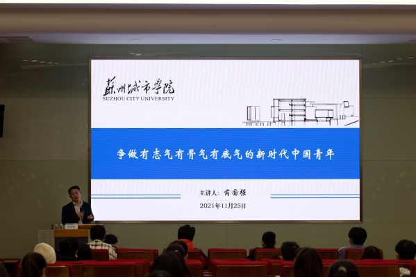 11月25日下午,2021级新生第一课在3号楼101教室举行,校党委书记芮国强作题为《争做有志气有骨气有底气的新时代中国青年》的报告,帮助2021级新生尽快转变角色,树立大学主人翁意识,做新时代中国青年,肩负起新时代青年的历史使命与担当。2021级新生代表参加此次报告会。