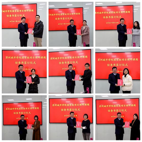 会议举行了2021年苏州城市学院国家级项目预研课题立项任务书签订仪式,每位立项课题负责人逐一向高雷副校长递交立项任务书。