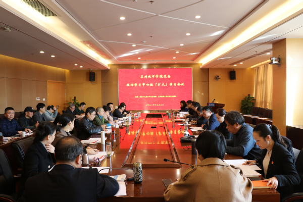 2021年12月3日上午,我校在综合楼三楼大会议室召开党委理论学习中心组(扩大)专题学习会,专题学习党的十九届六中全会精神和江苏省第十四次党代会精神。校党委理论学习中心组成员、各系(室)主任、马克思主义学院相关老师参加会议,会议由党委书记芮国强主持。