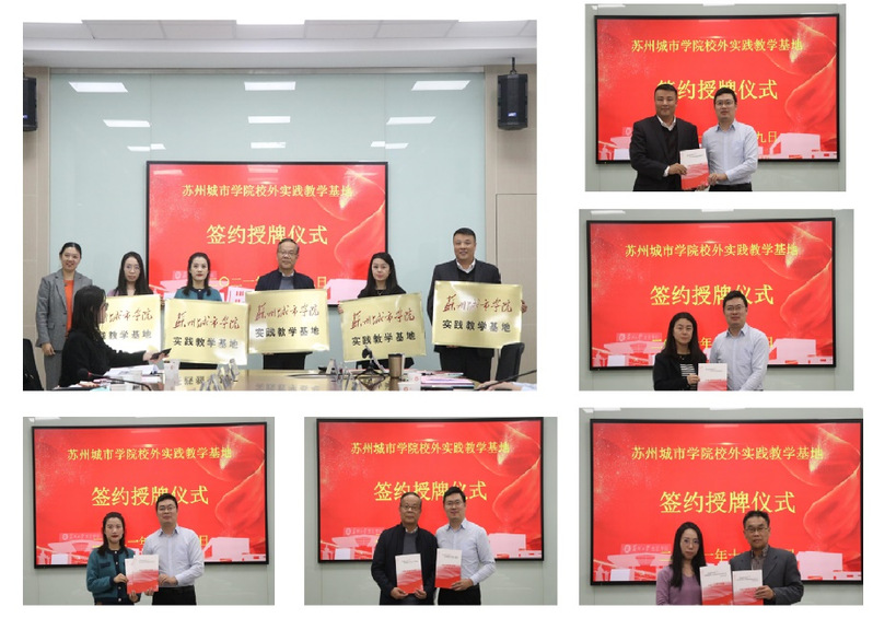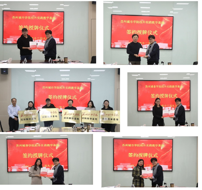 各专业负责人分别与校外实践教学基地领导交换共建协议文本,施盛威、张明为校外实践教学基地授牌。